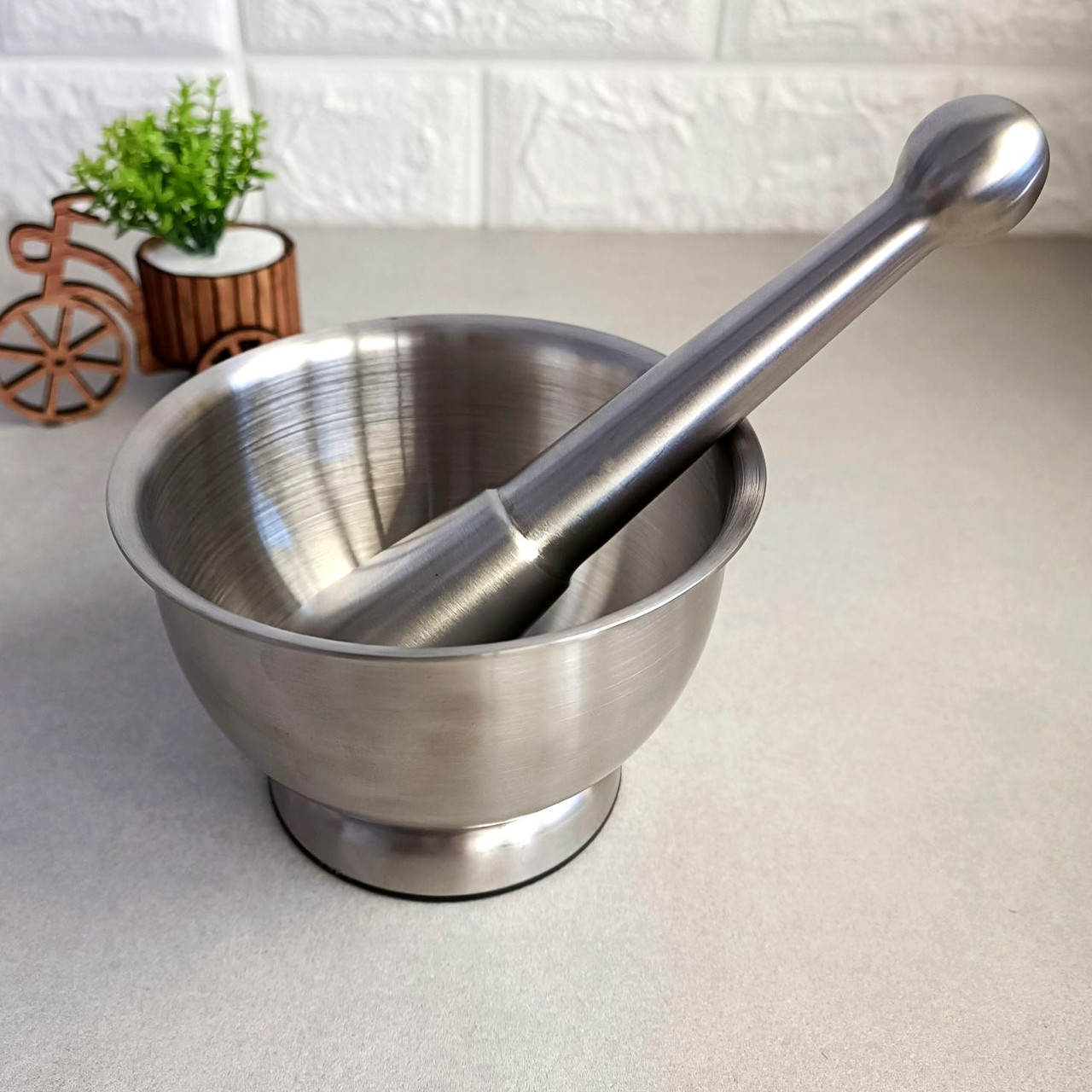 Ступка і товкач з нержавіючої сталі для спецій незамінна на кухні і прослужить Вам довгі роки.