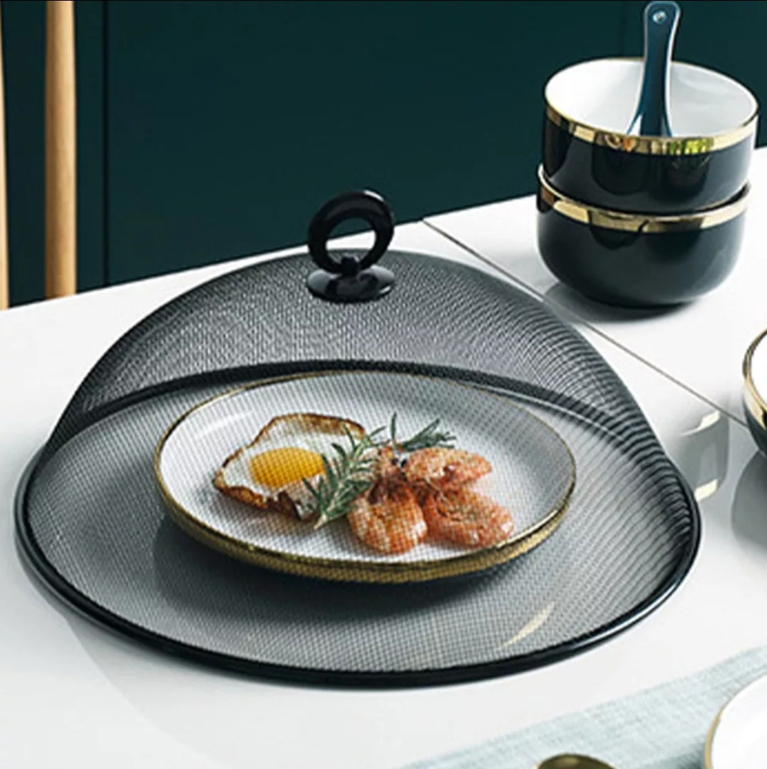 Зручна та практична кришка-сітка — незамінний аксесуар для кухні та відпочинку на природі. Легка металева сітка ефективно захищає їжу від мух, ос, мошок та інших комах, забезпечуючи при цьому вільний доступ повітря. Завдяки розміру 30×14 см вона підходить для більшості тарілок, страв і підносів. Зручна ручка-кільце дозволяє легко знімати кришку. Ідеально підходить для пікніків, альтанок, терас та домашнього використання.
