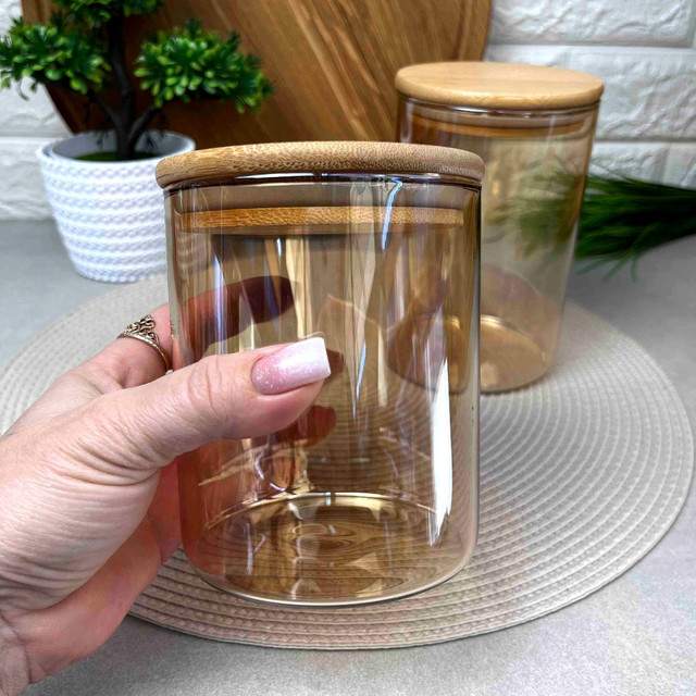 Банка з бамбуковою герметичною дерев'яною кришкою