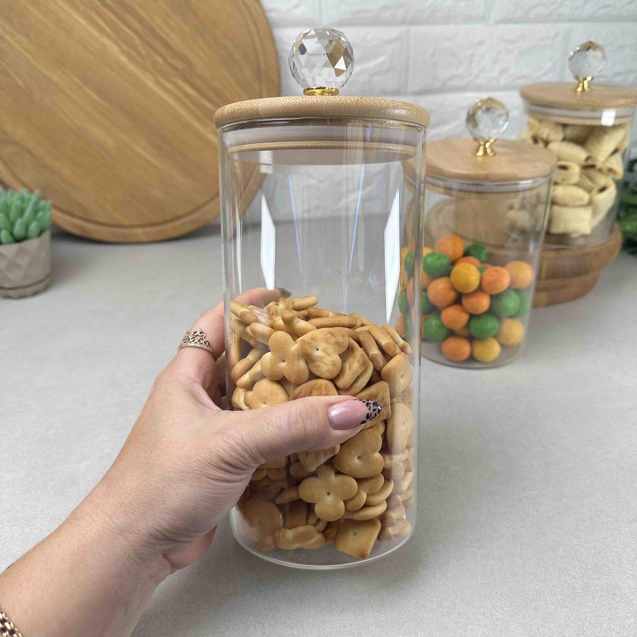 Скляна банка для зберігання з бамбуковою кришкою 1.3 л мл Crystal