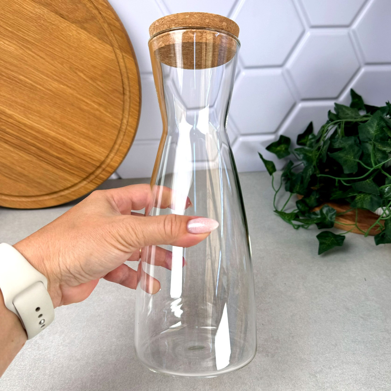 Термостійкий глечик із боросилікатного скла витримує -20…+150 °C, підходить для холодних і гарячих напоїв. Пробкова кришка зберігає аромат, гладкі стінки легко миються. Об’єм 1 л — зручно для сім’ї та гостей. Можна мити в посудомийній машині.